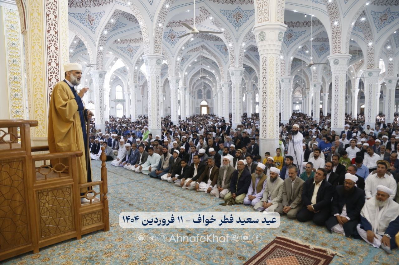 نماز عید فطر ساعت 8:15 صبح به امامت مولوی خواجه صدرالدین احراری، امام جمعه اهلسنت شهر خواف اقامه گردید.