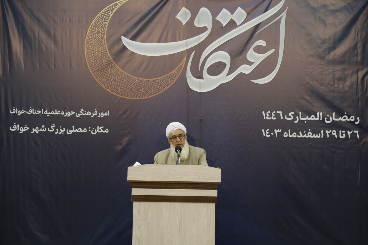 مراسم علمی-معنوی اعتکاف سه روزه نفلی از سوی امور فرهنگی حوزه علمیه احناف خواف در روزهای پایانی اسفندماه 1403 مصادف با 16، 17 و 18 رمضان المبارک 1446 در مصلی بزرگ این شهر برگزار شد.