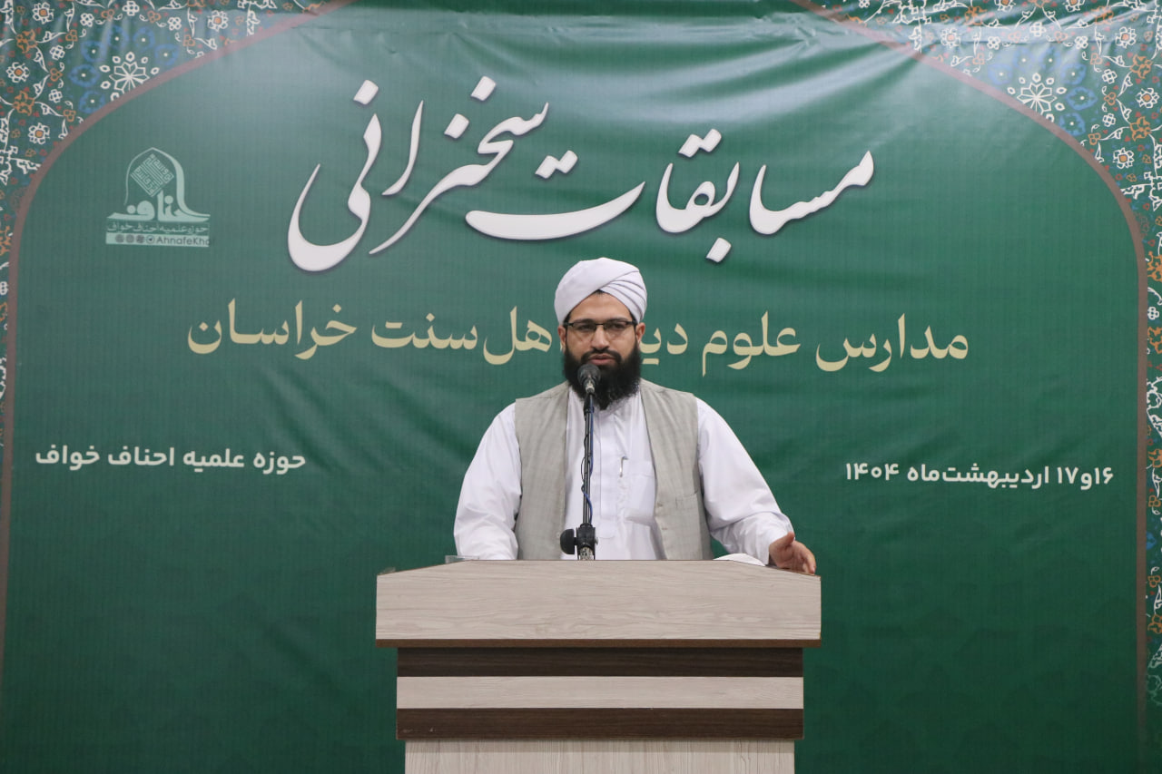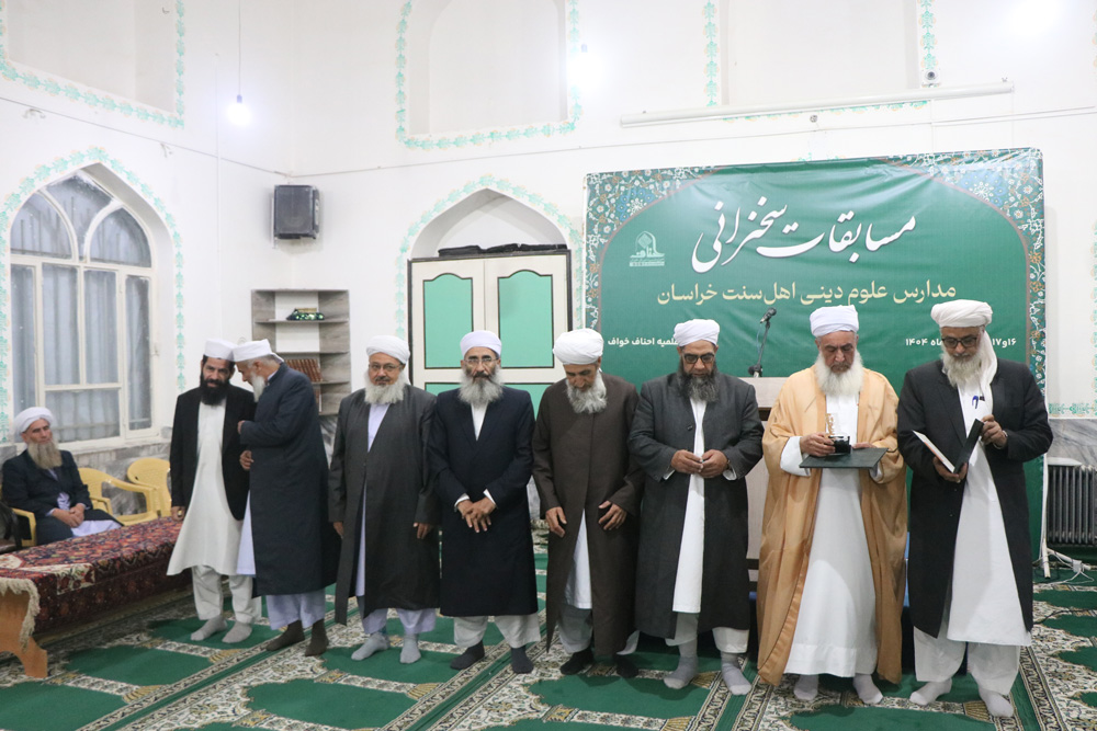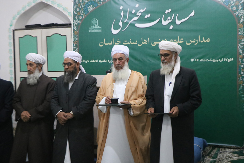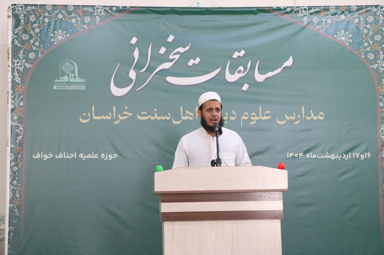 به گزارش پایگاه اطلاع رسانی احناف خواف، مسابقه سخنرانی طلاب مدارس علوم دینی اهل‌سنت خراسان با حضور گسترده طلاب و علمای برجسته، در روزهای سه‌شنبه و چهارشنبه، ۱۶ و ۱۷ اردیبهشت‌ماه ۱۴۰۴، در حوزه علمیه احناف خواف برگزار شد.