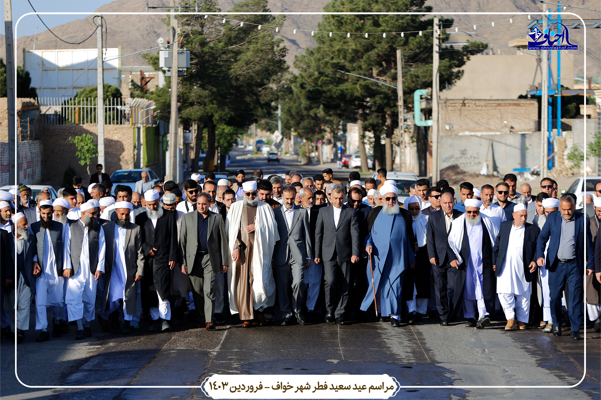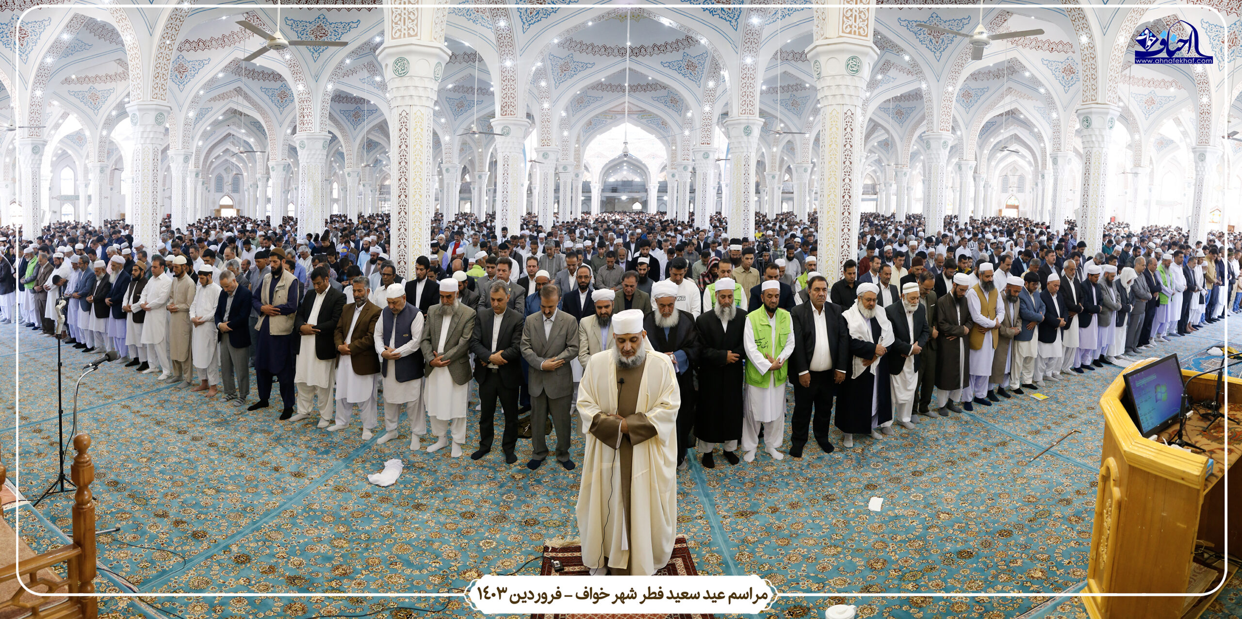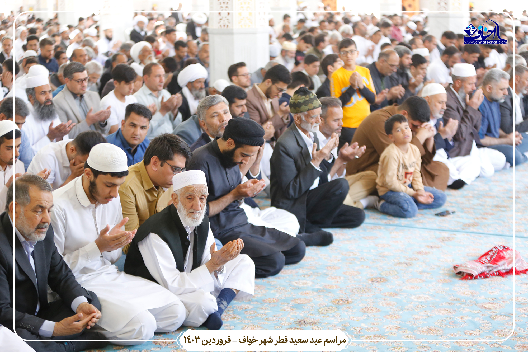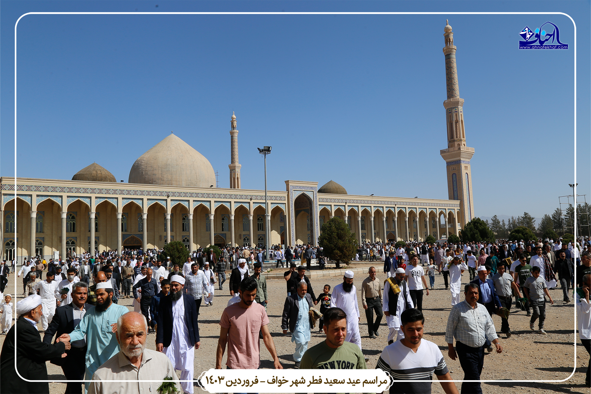 مراسم عید فطر اهل سنت شهر خواف همزمان با اهل سنت سراسر کشور صبح چهارشنبه 22 فروردین ماه 1403 با حضور پرشور و گسترده مردم در مصلی بزرگ این شهر برگزار شد.