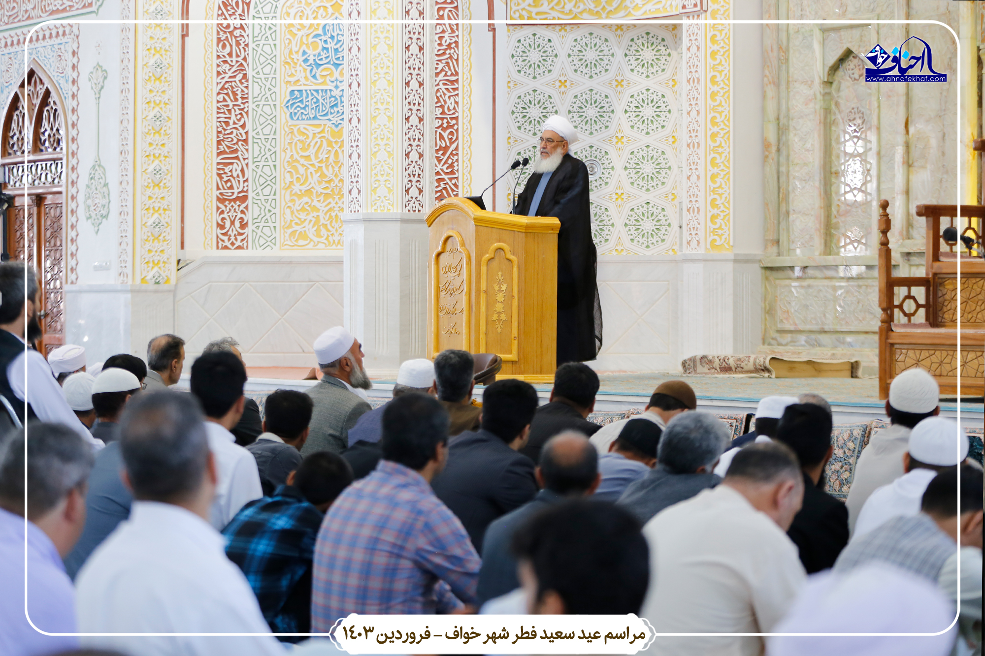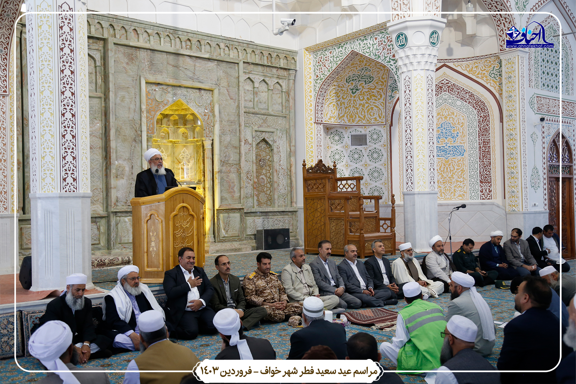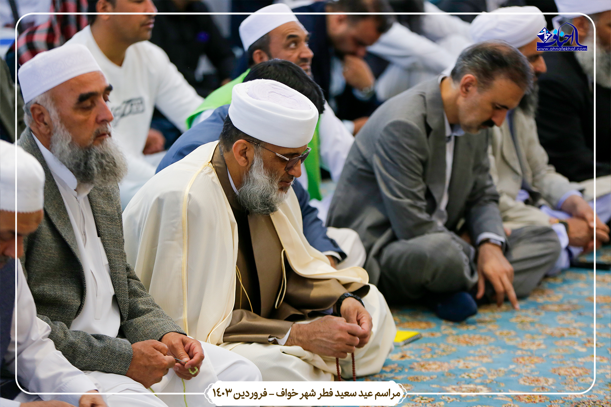 سخنران این مراسم مولانا حبیب الرحمن مطهری «مدیریت حوزه علمیه احناف خواف» بودند و نماز عید به امامت مولوی خواجه صدرالدین احراری «امام جمعه اهل سنت شهر خواف» اقامه گردید.