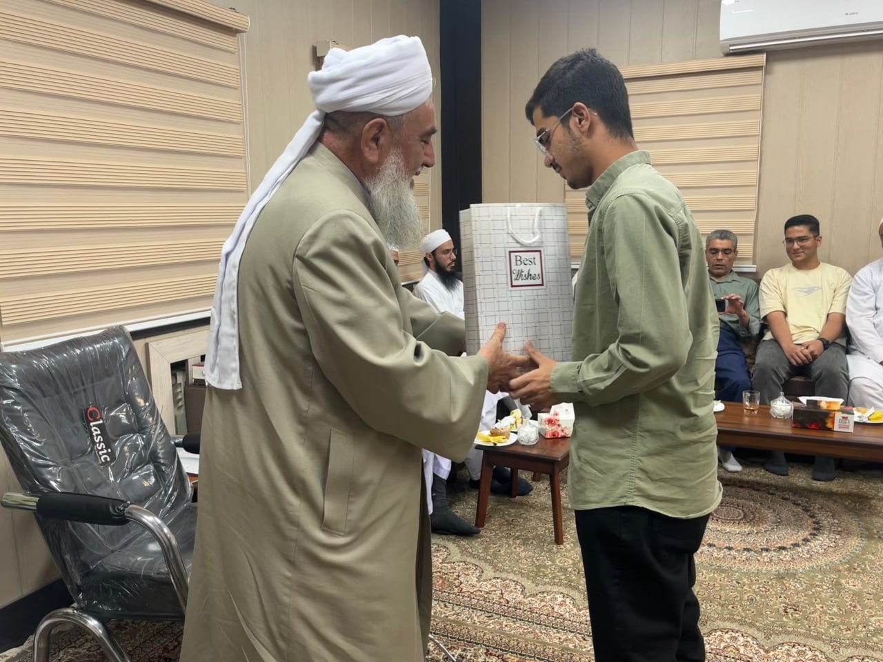 به گزارش پایگاه اطلاع رسانی احناف خواف، مولانا حبیب الرحمن مطهری در مراسم تجلیل از برترینهای کنکور سراسری که شامگاه چهارشنبه 26 شهریورماه 1404 در دفتر مدیریت حوزه علمیه احناف خواف با حضور 12 نفر از برترینهای کنکور و والدین آنها و تعدادی از اساتید این حوزه برگزار شد، با اشاره به آیه 9 سوره زمر «هَلْ يَسْتَوِي الَّذِينَ يَعْلَمُونَ وَالَّذِينَ لَا يَعْلَمُونَ إِنَّمَا يَتَذَكَّرُ أُولُو الْأَلْبَابِ» پیرامون اهمیت علم و دانش در اسلام به ایراد سخن پرداختند.
